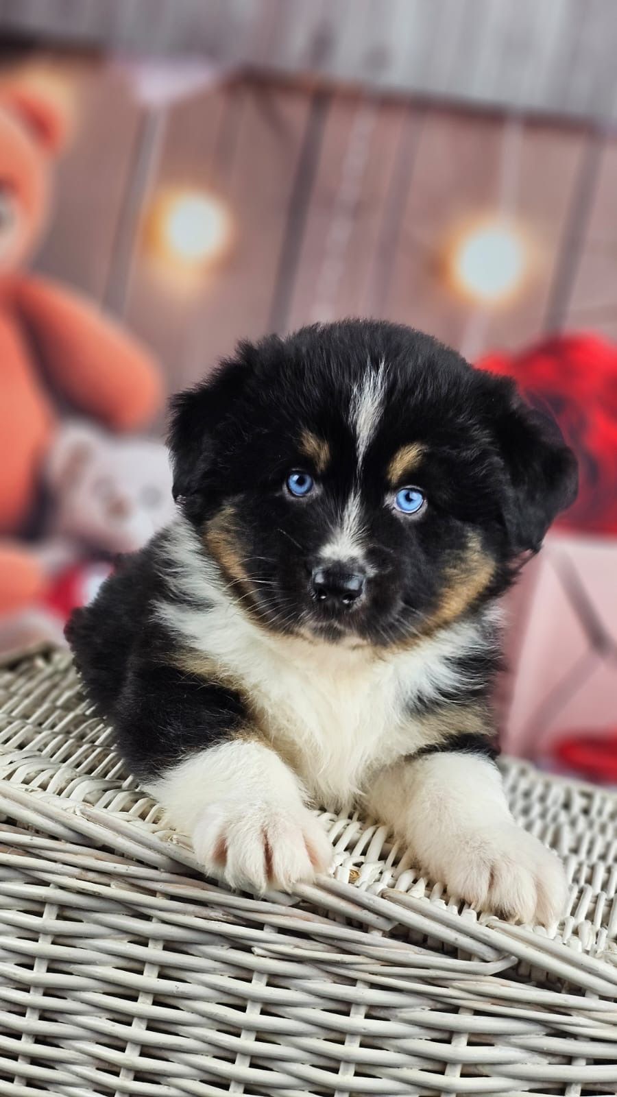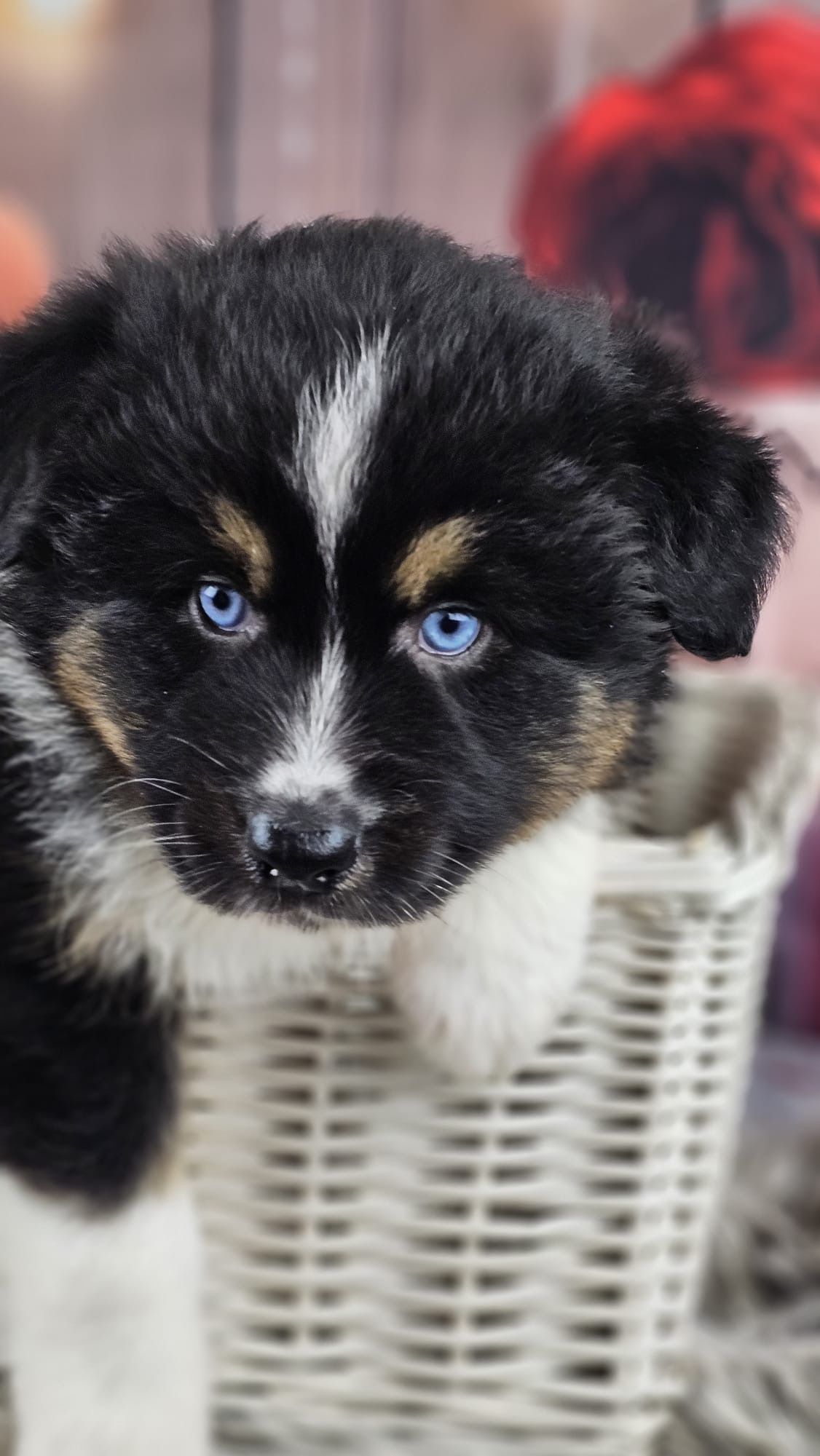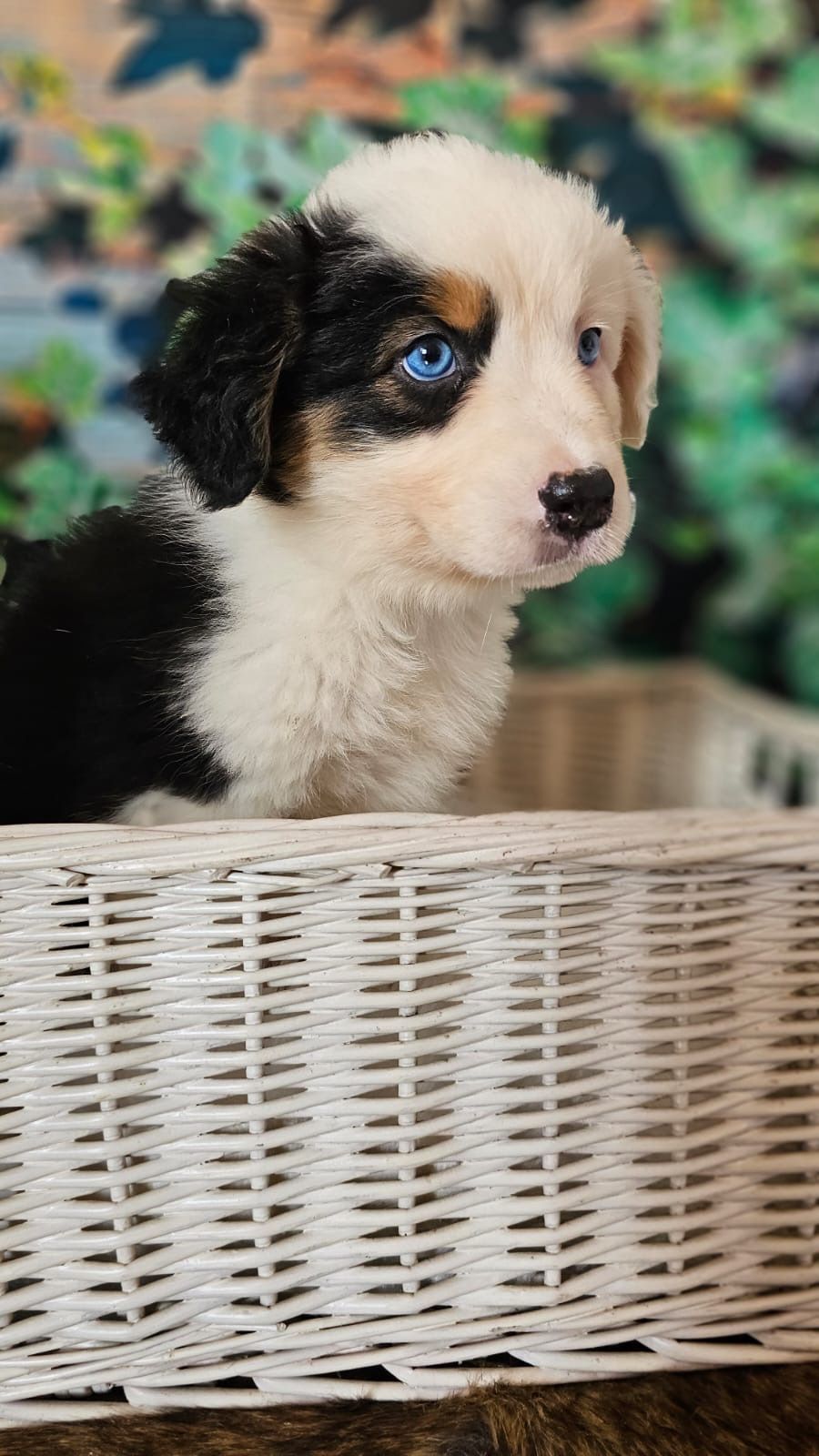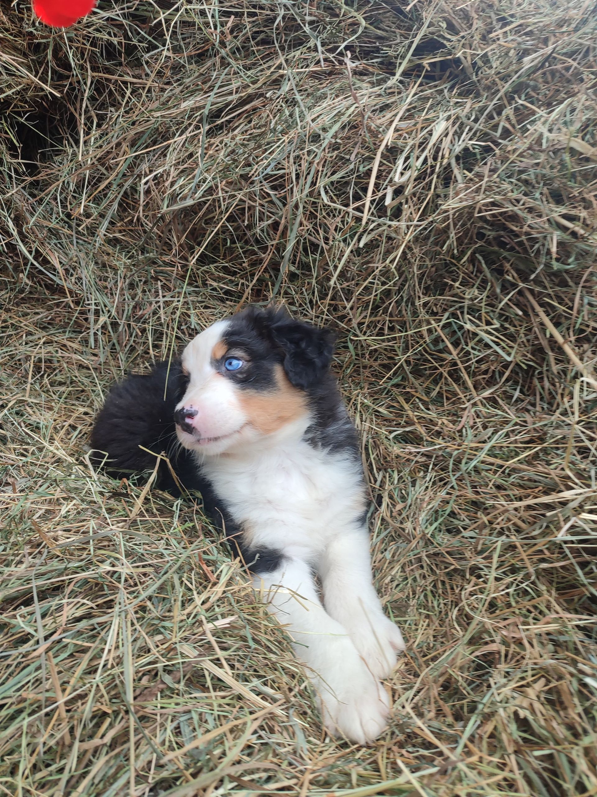Skyla hat am 26.04. 3 Welpen geboren. 2 Rüden in black-tri und 1 Hündin in blue-merle.