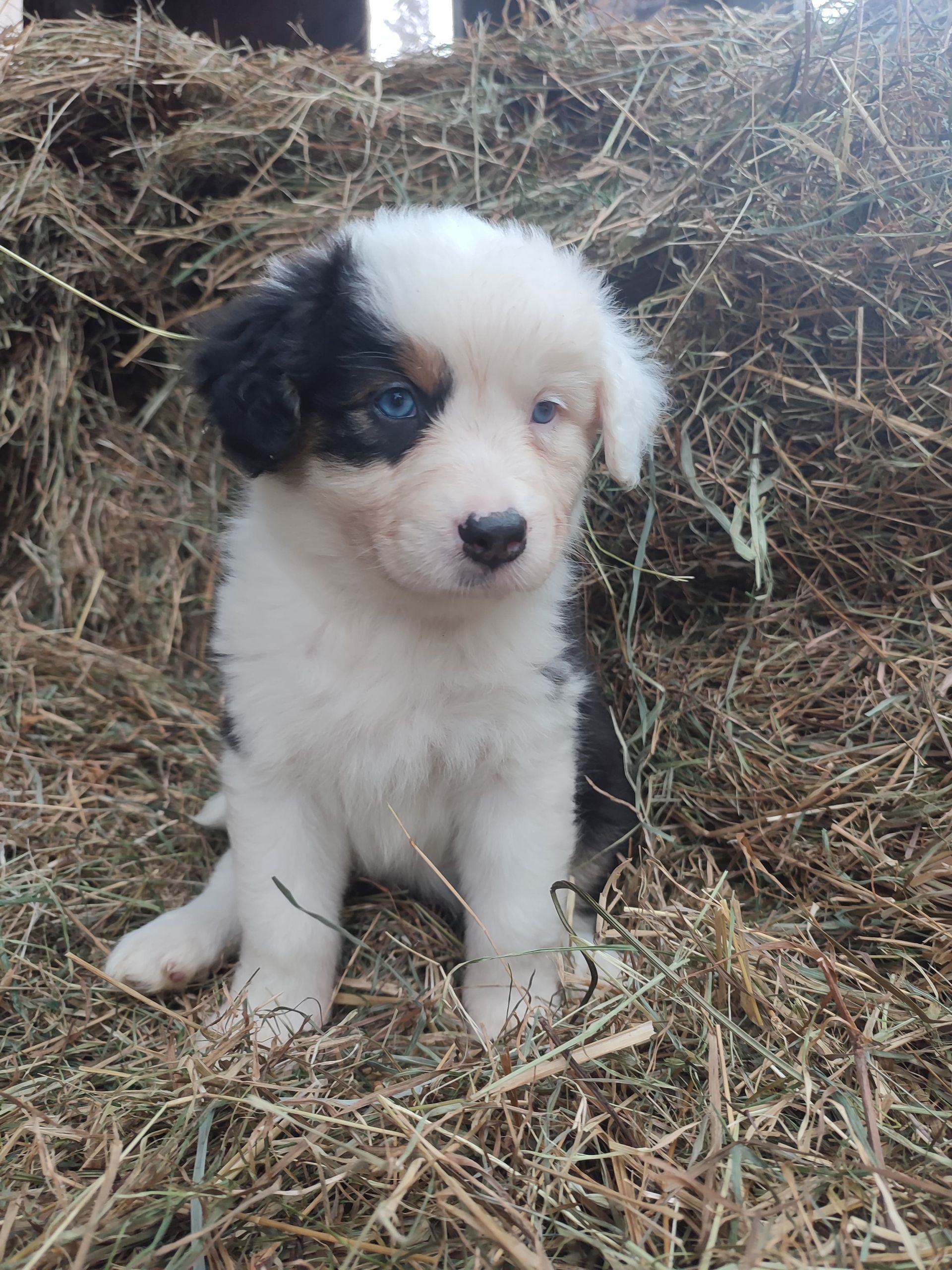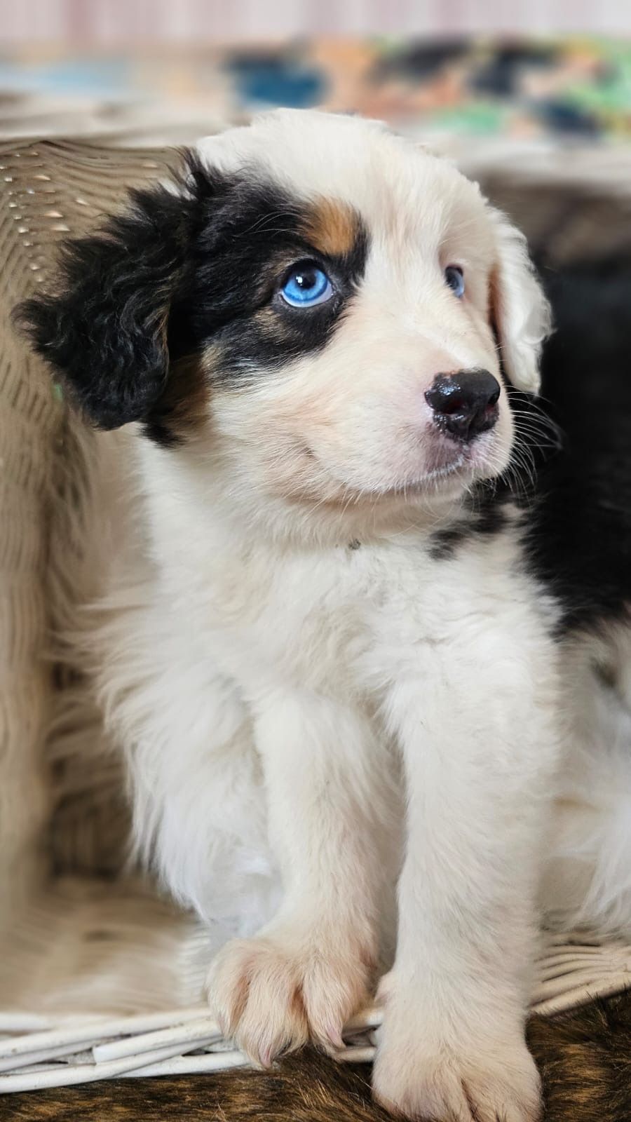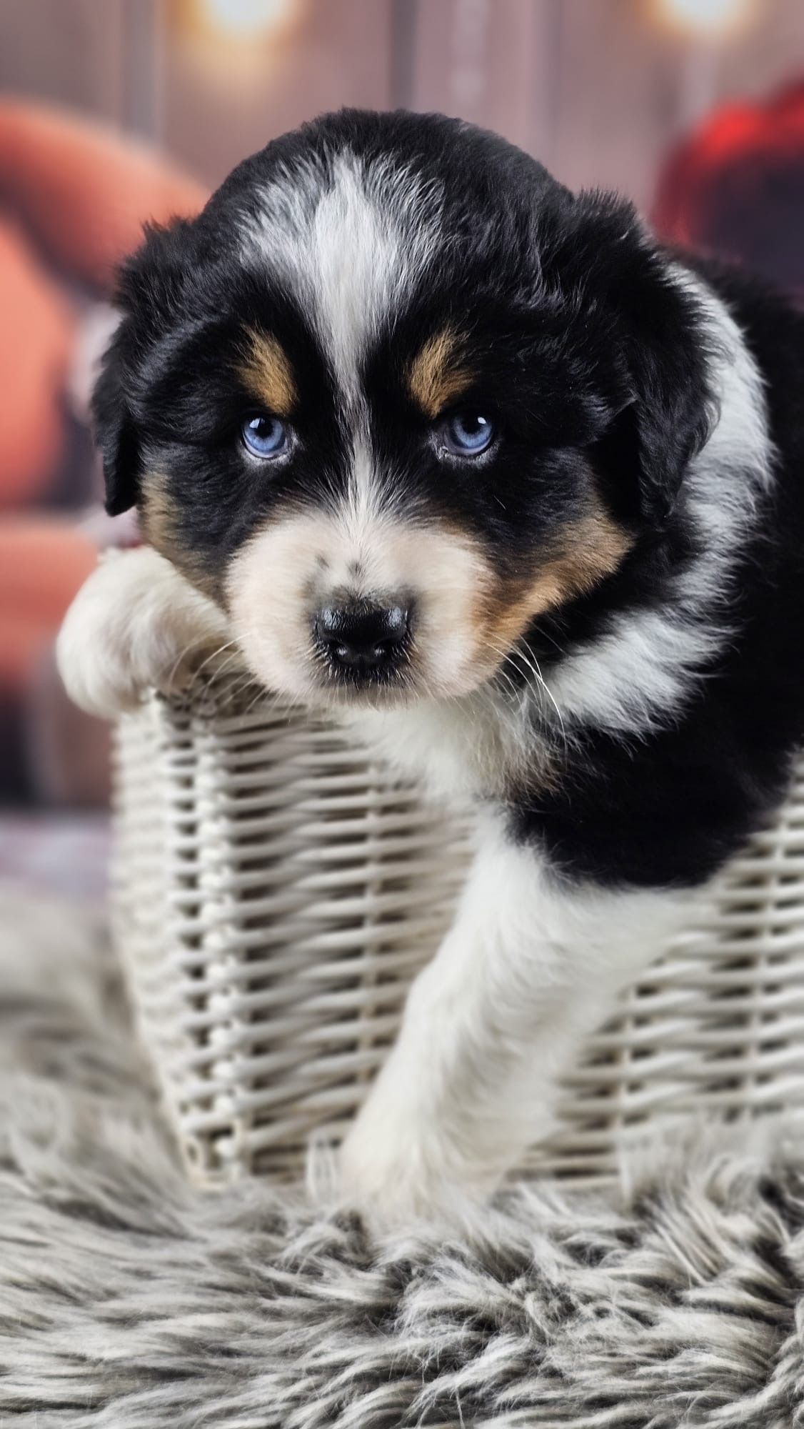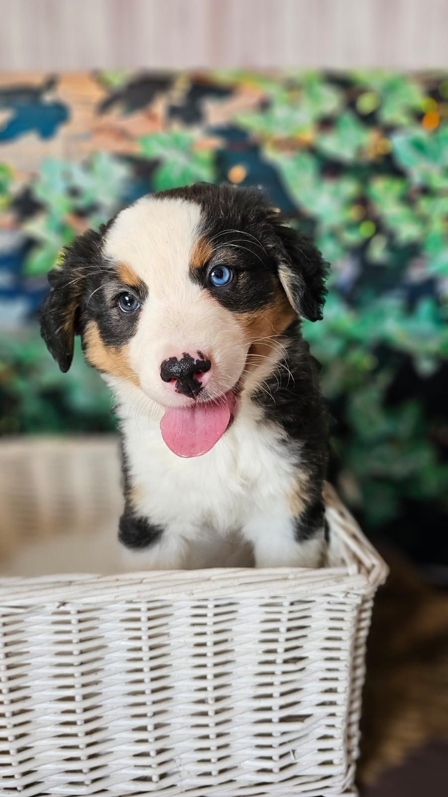 Skyla hat am 26.04. 3 Welpen geboren. 2 Rüden in black-tri und 1 Hündin in blue-merle.