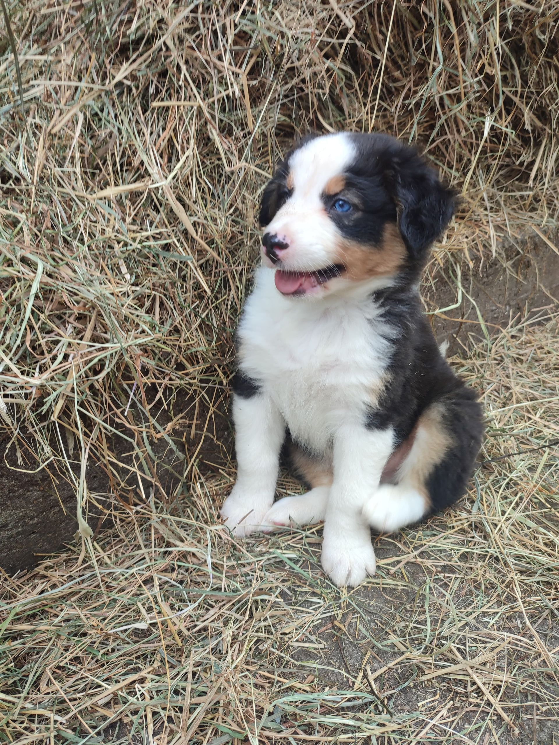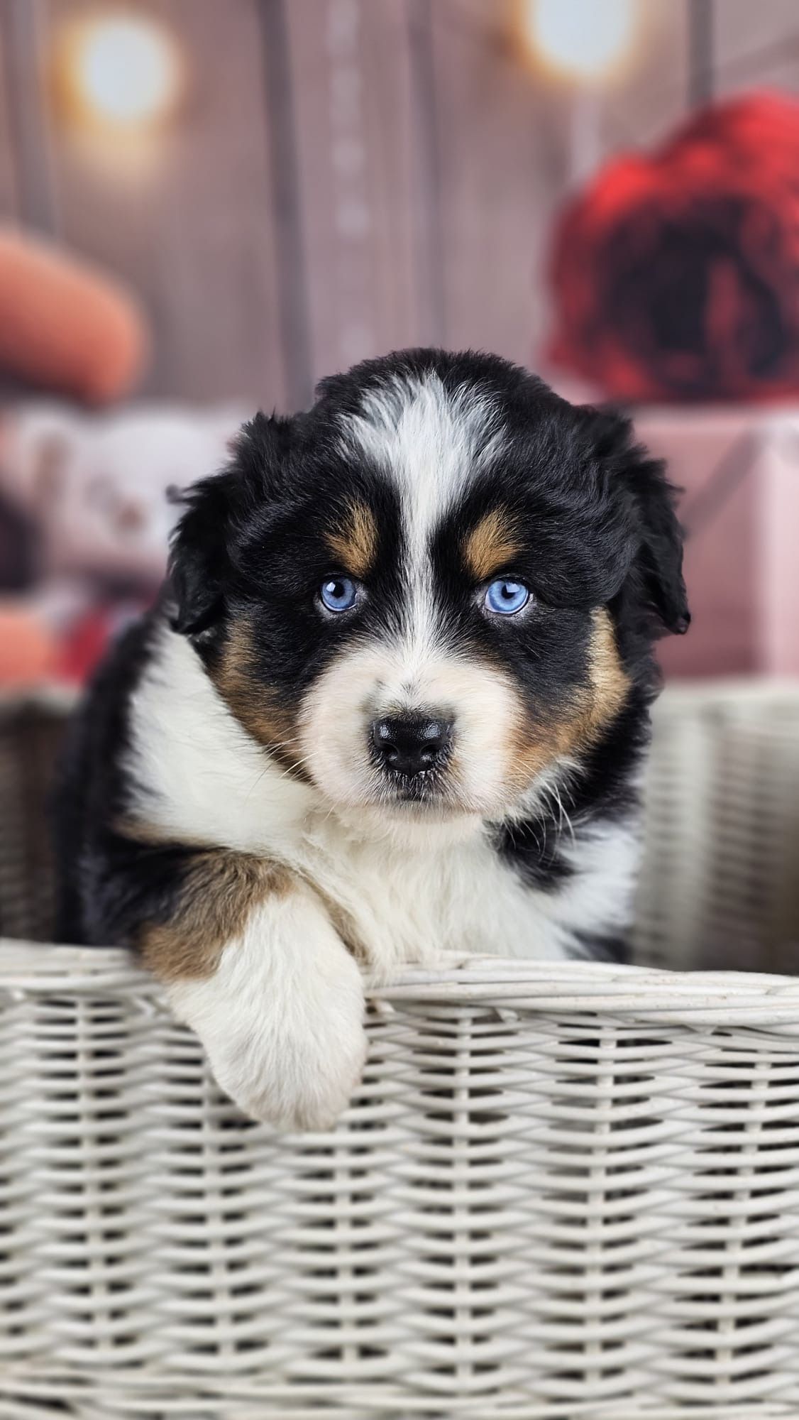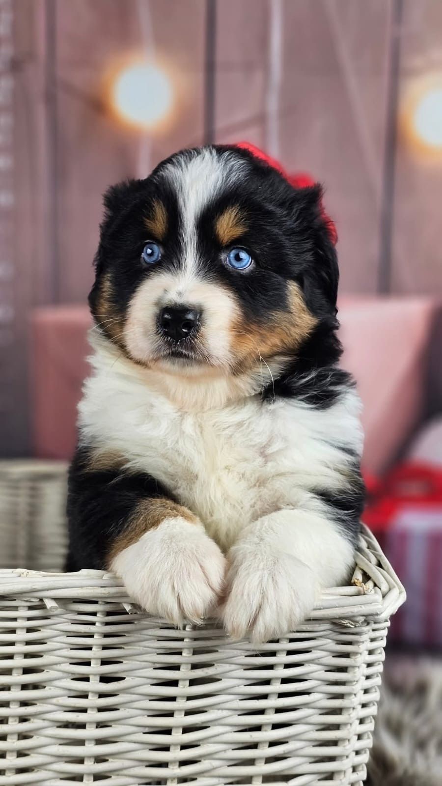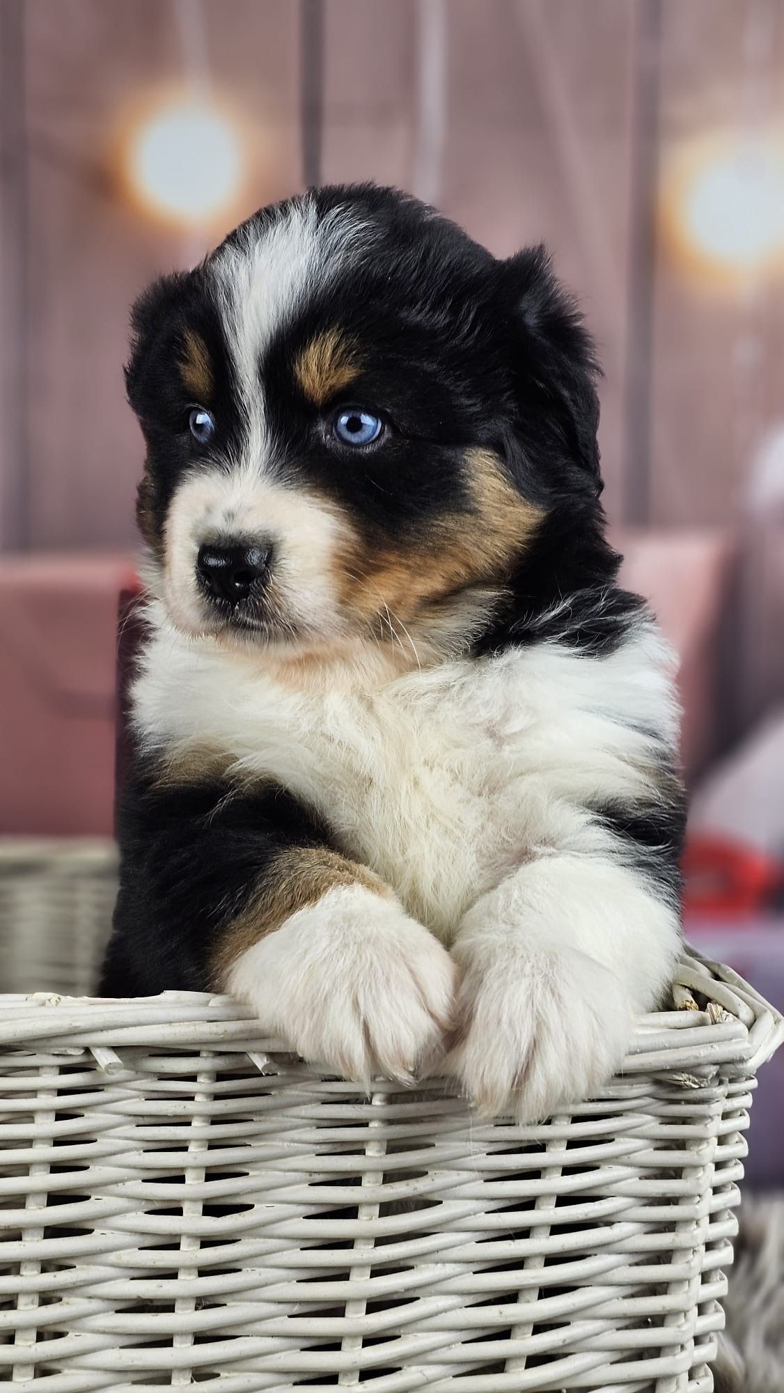 Skyla hat am 26.04. 3 Welpen geboren. 2 Rüden in black-tri und 1 Hündin in blue-merle.